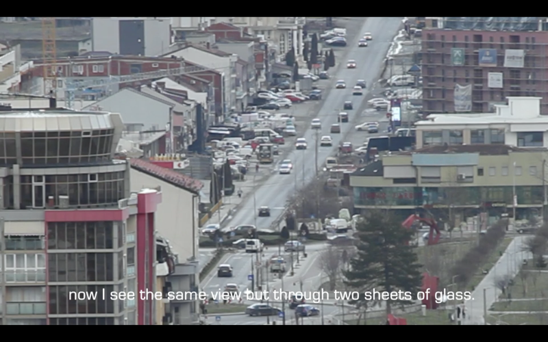 Set within a lush hotel room in Pristina, the film follows a protagonist, finding herself living in multiple layered temporalities. Through the balcony windows the city’s architectural landscape looms, with its uneven surface of past and present. The film explores how different currencies intersect, raising deeper questions about personal identity and the evolving concept of a nation.